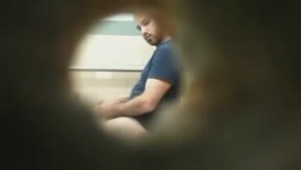 Spying on a hot daddy jerking off in the toilet